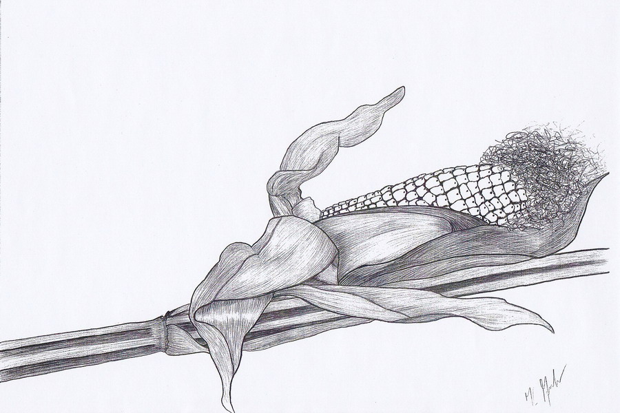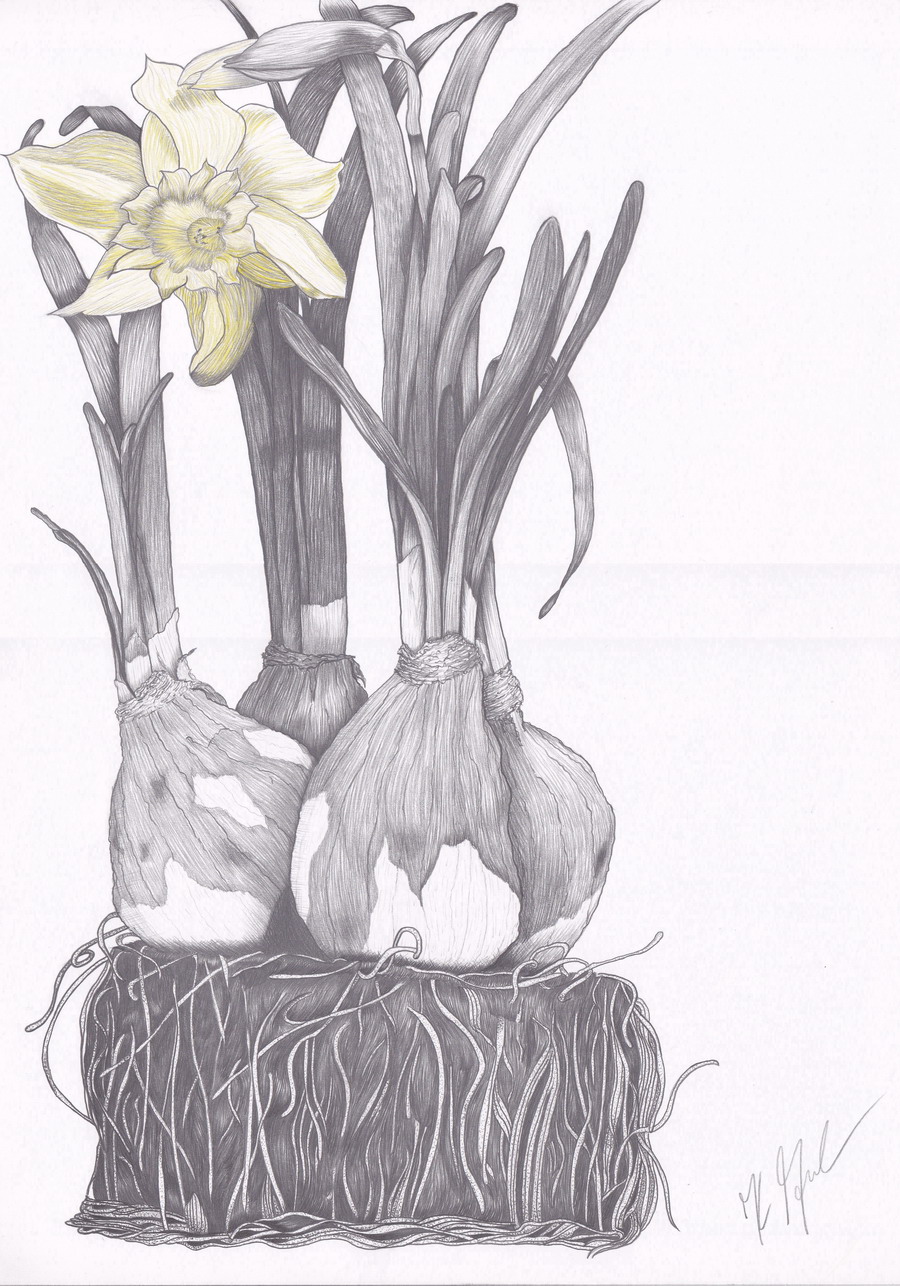 Nach den ersten Strich Übungen entstand diese Lampion Blüte als erstes. Blattgröße DIN A4.