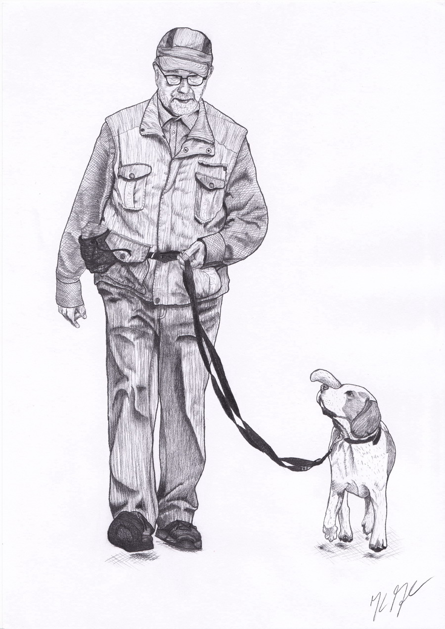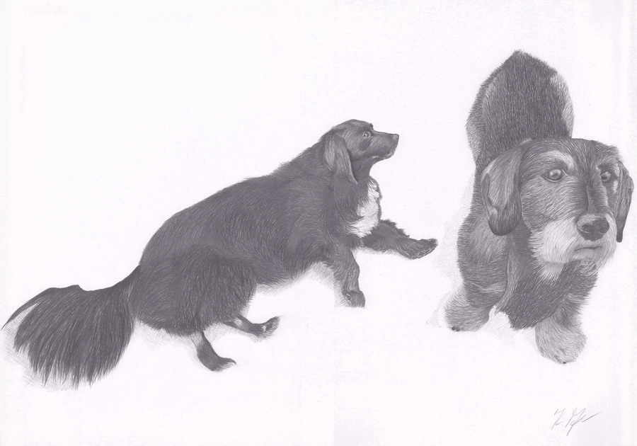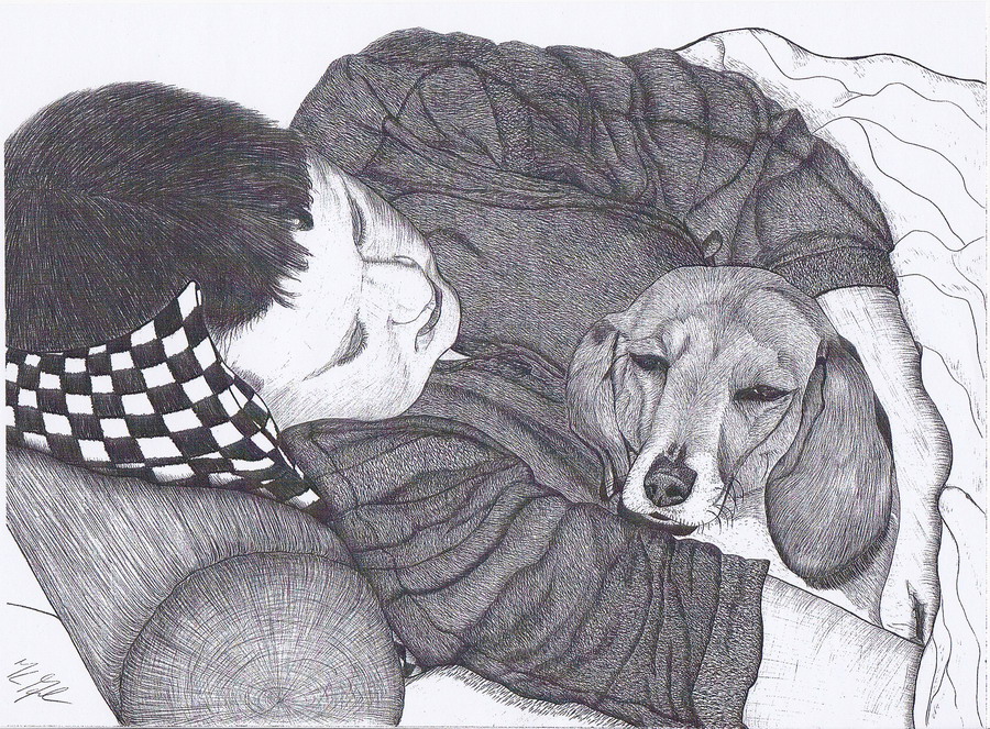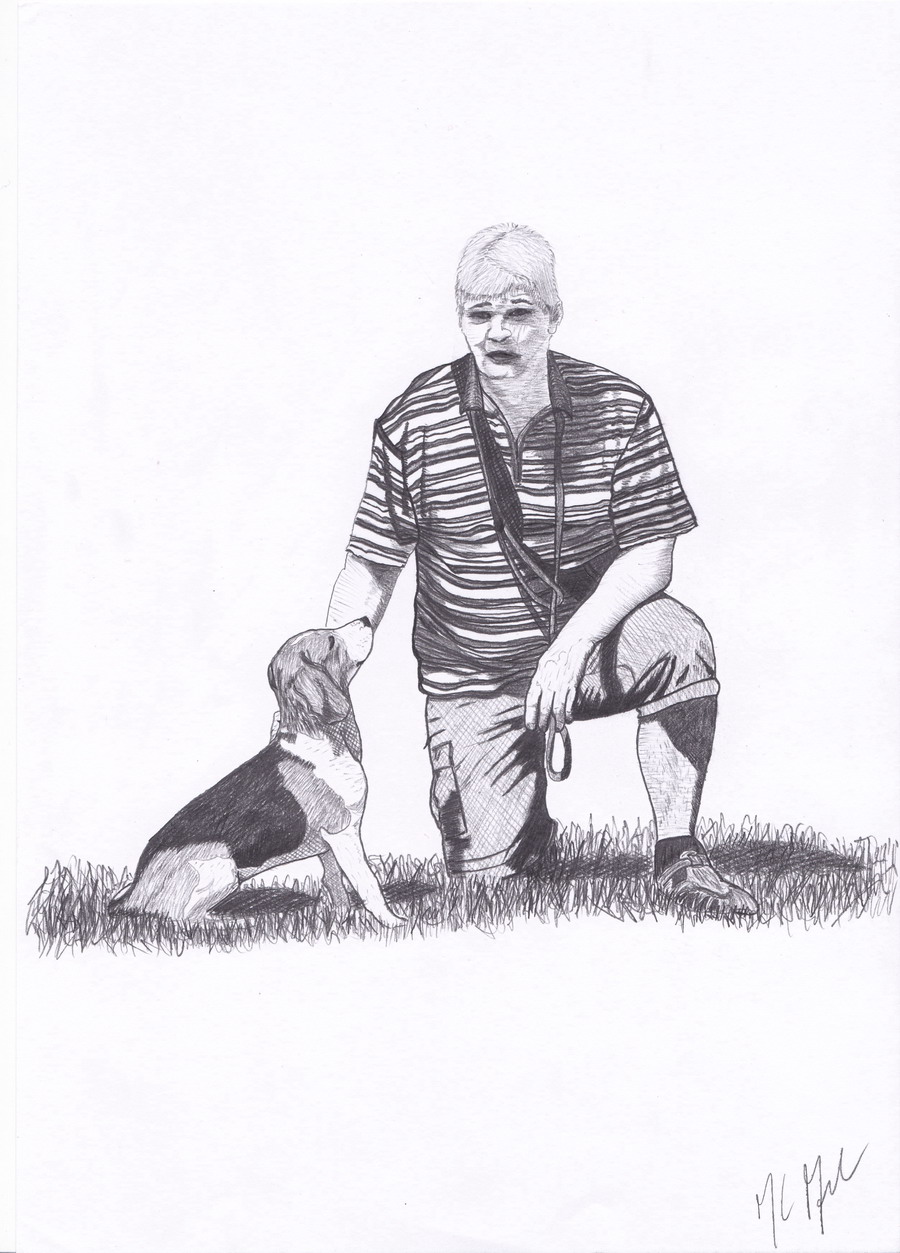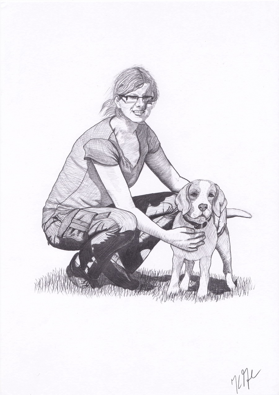 Animiert durch das Portrait wage ich mich an ein Bild von Sohn und Hund,
