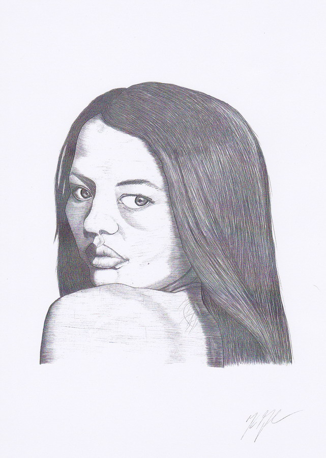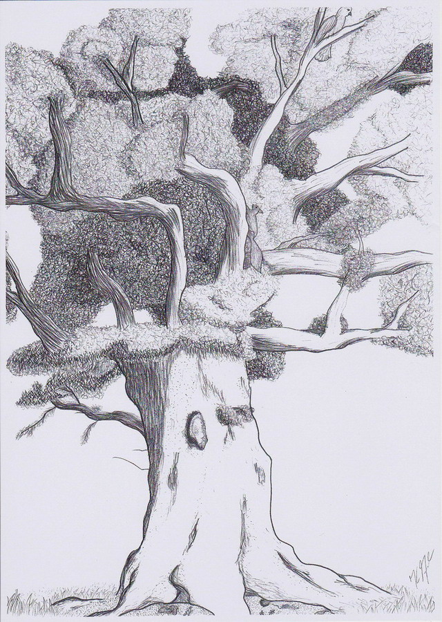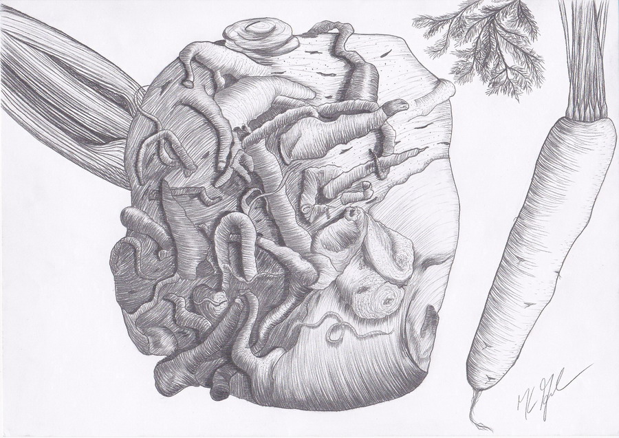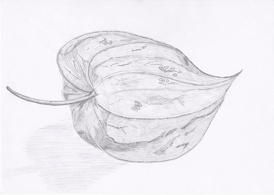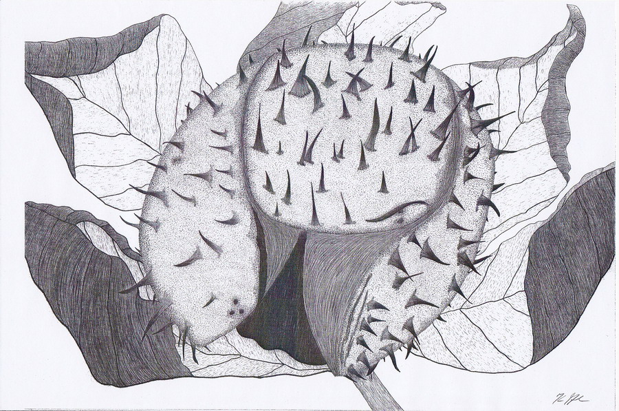 Nach den ersten Strich Übungen entstand diese Lampion Blüte als erstes. Blattgröße DIN A4.