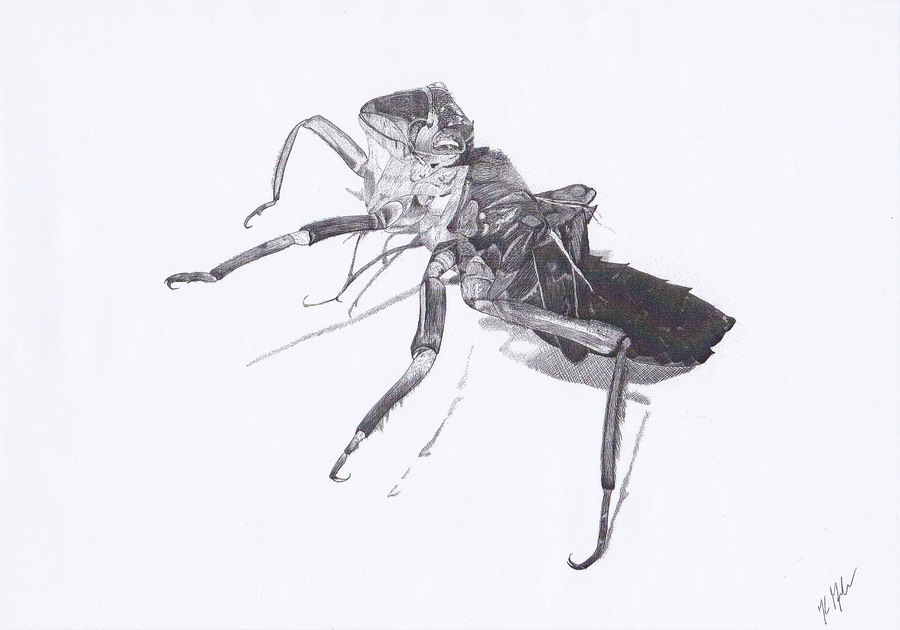 Excuvie, Puppe einer Libelle. Blattgröße DIN A2